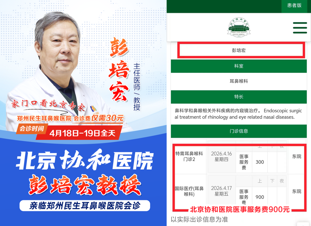 家门口看协和名医!北京协和医院彭培宏教授4月18-19日郑州亲诊,速约!