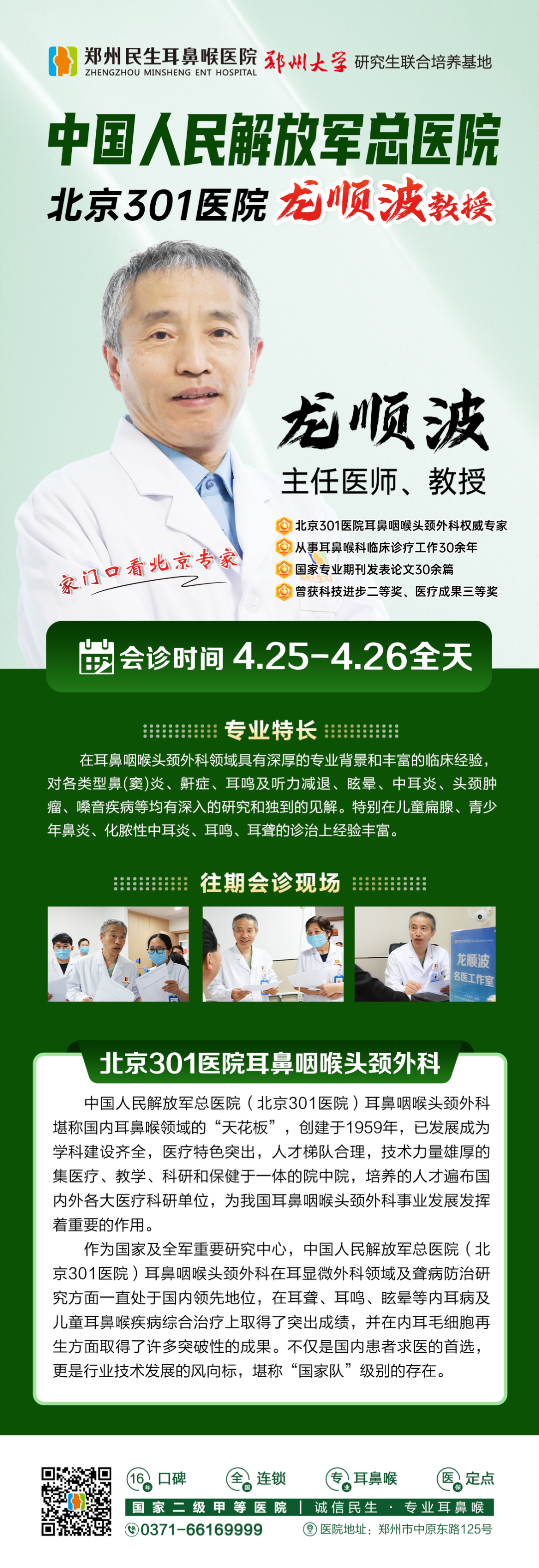 4月25-26日,北京301医院耳鼻喉科主任医师龙顺波教授亲临